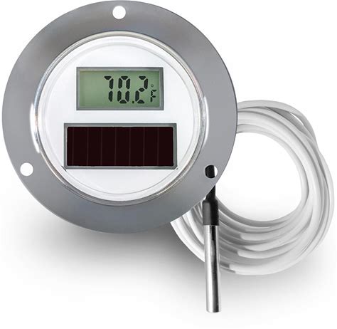 Howe Technology Digital Thermometer, Solar Powered Display With Battery Backup, Stainless Steel, 2" Dial Diameter, Front Flange, 108" Sensor Cable, -