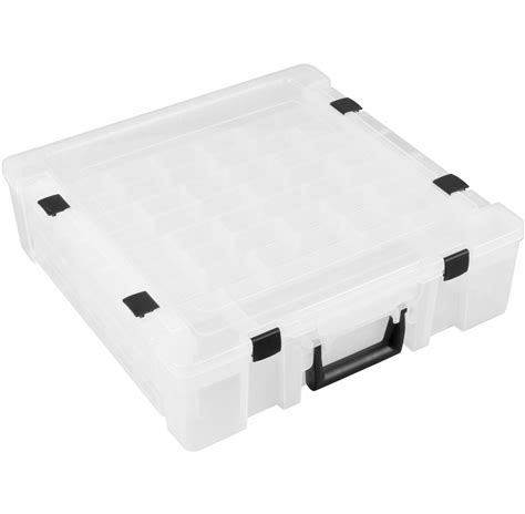 Flambeau Compartment Box: 17 1/4 in X 16 3/4 in X 5 In, Clear, 47 Compartments, 15 Adj Dividers Model: T9502