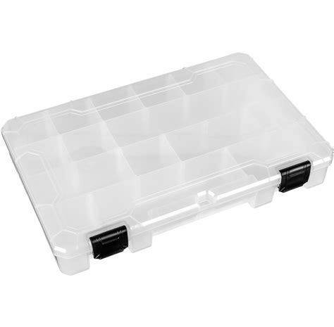 Flambeau Compartment Box: 9 3/4 in X 16 1/2 in X 3 1/4 In, Clear, 15 Compartments, 9 Adj Dividers Model: T7004