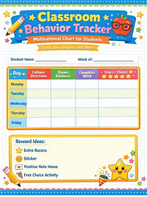 Printable Classroom Behavior Tracker PDF - Motivational Chart For Students, Teacher Reward Chart, Instant Download
