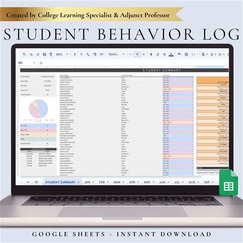 Digital Student Behavior Tracker Log For Teacher Google Sheets Behavior Chart Documentation Spreadsheet For Teacher Classroom Template