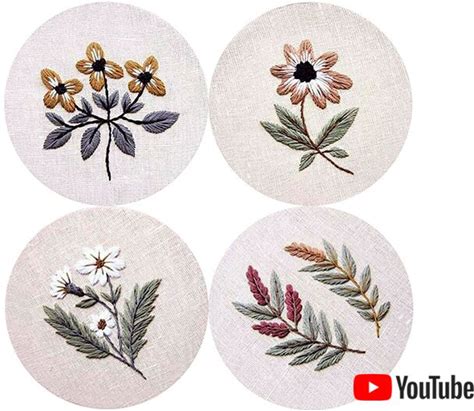 Pdf Pattern + Video Tutorial "4 Elements" 15 cm. Hand Embroidery Floral Designs For Beginners. Digital Download, Printable Templates + Guide