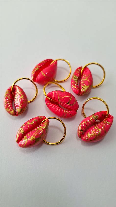 CLEARANCE 5Pcs Printed Natural Cowrie Shell Hair Rings, Dread Rings Loc Jewelry, Braid Rings, Loc Jewelry, Dreadlock Rings