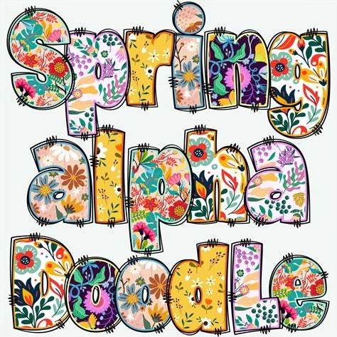 Spring Alphabet Letters, Bubble Letters, Spring Colors, Doodle Letters, Fun Letters, Commercial Use, Easter Alphabet, Easter Letters