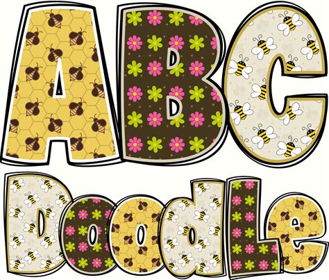 BUNDLE Spring Alphabet PNG, Spring Doodle, Spring PNG Letters, Spring Bee Doodle, Spring Alpha Doodle, Spring Alphabet, Alpha Pack Doodle 7'