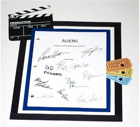 Aliens Movie Screenplay Script Autographed James Cameron, Sigourney Weaver, Lance Henriksen, Paul Reiser, William Hope