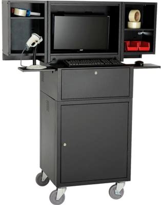 Mobile Computer Cabinet - Deluxe, 23X25-50X62", Black - ULINE