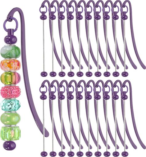 Dunzoom 50 Pcs Beadable Bookmarks DIY Metal Blank Bar Bookmark For Beads Modern Bead Craft Jewelry Pendant Charm Gift For Book Lovers Student Teacher