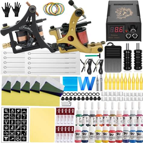 Complete Coils Tattoo Machine Kit Power Supply With Coils Machine Needles Ink Accessories Set Tattoo
