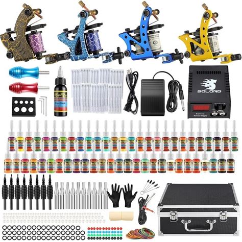 Complete Coils Tattoo Kit Liner Shader Machine Power Supply Inks With Tattoo Needles Accessories Set